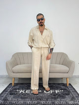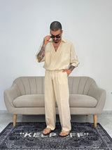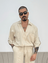 Casacca a mezza manica, in lino, nella colorazione beige.