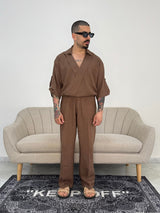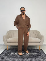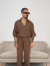 Casacca mezza manica in lino, nella colorazione tabacco.