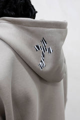 Felpa con cappuccio,zip e croci sul fronte e cappuccio nella colorazione sabbia by Re born, nuovo brand in casa hall of fame.