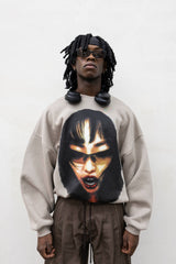 Felpa over/Crop con stampa sul fronte e coulisse regolabile sul fondo per poterla crollare, nella colorazione sabbia.