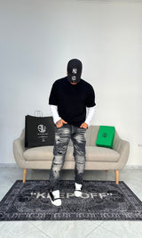 T-shirt doppia manica tagli sulle spalle e Stampa sul retro, nella colorazione nera.
