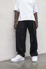 Pantaloni ampi dalla silhouette giapponese con elastico in vita e super pence inverse nella colorazione nera.